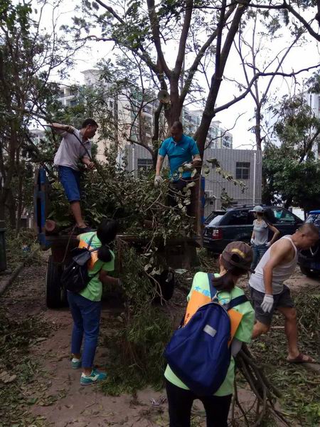 但災難打不倒樂觀的廣東人,臺風過后,人們立即行動起來,積極投入到恢復重建當中。26日,是風災過后第一個周六,不少珠海人自發(fā)地走上街頭,加入義工隊伍,親身參與城市清理工作,打通道路,恢復交通。